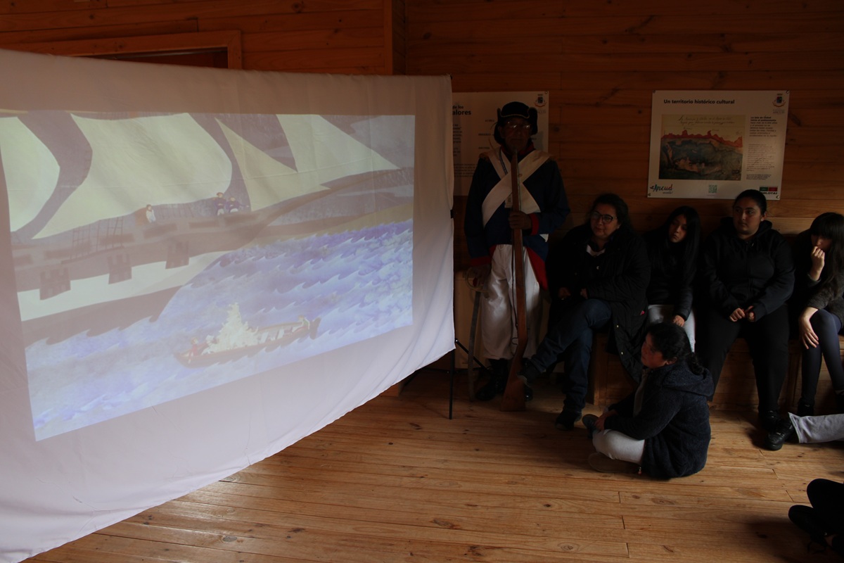 La jornada continuó con una visita guiada a la exposición “Conrad Martens en Chiloé, 1834”, donde los estudiantes pudieron interactuar con material didáctico especialmente preparado para ellos, enriqueciendo su aprendizaje sobre la historia y representaciones del paisaje local.