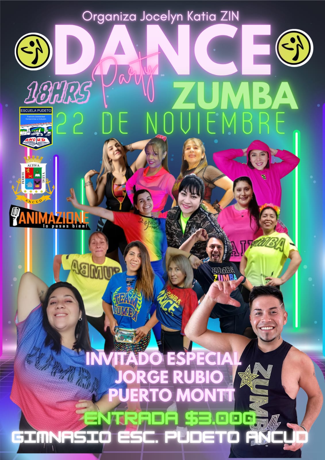 Eventos Deportivos EVENTO DE ZUMBA – SÁBADO 22 NOVIEMBRE 2025 11/11/2025 9 Compartir Facebook Twitter WhatsApp Telegram Email Print 📍 Lugar: Gimnasio Escuela Pudeto 📅 Fecha: Sábado 22 noviembre 2025 – 18:00 hrs 💲 Valor Inscripción: $3.000.-