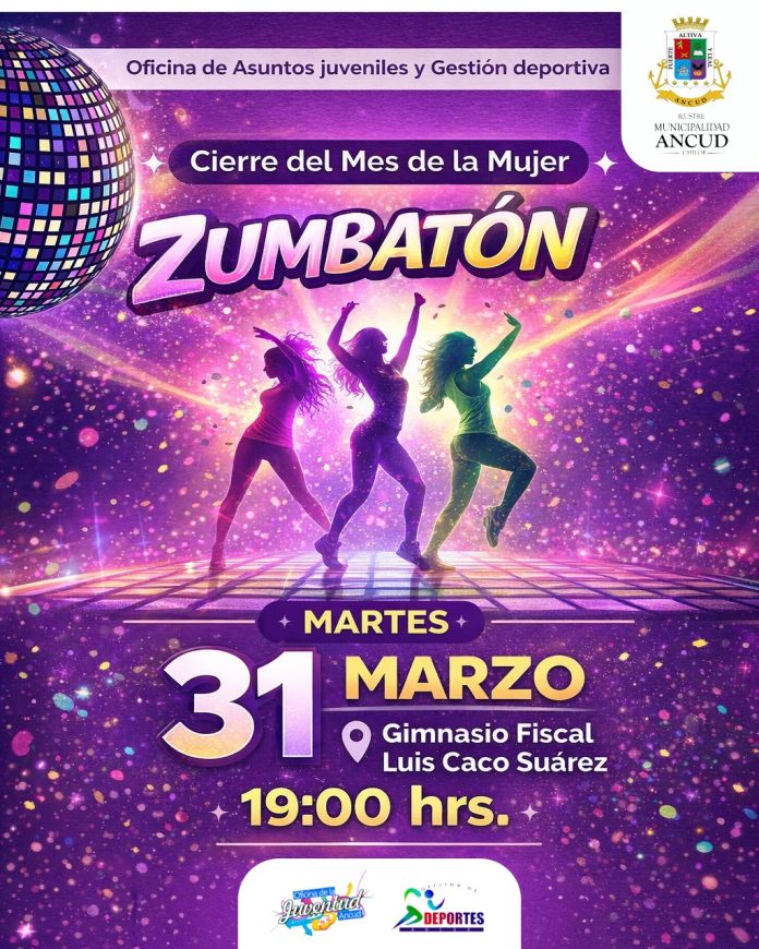 Eventos Deportivos ZUMBATON MES DE LA MUJER – 19:00 HRS – 31 DE MARZO – GIMNASIO FISCAL 26/03/2026 8 Compartir Facebook Twitter WhatsApp Telegram Email Print 📍 Lugar: Gimnasio fiscal Luis Caco Suarez 📅 Fecha y hora: Martes 31 de marzo 2026, 19:00 hrs.- 💲 Valor Inscripción: GRATIS
